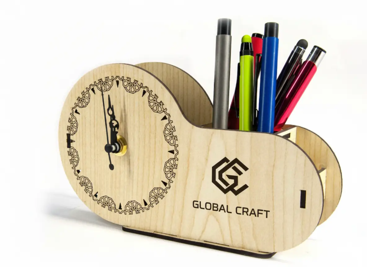 This laser-cut MDF Pen Holder with Clock is designed to bring both elegance and utility to any professional workspace, making it an excellent choice for corporate gifting. Crafted with precision using advanced laser technology, it features crisp detailing, smooth edges, and a refined finish that enhances its premium look. The integrated clock adds a touch of sophistication while helping users keep track of time effortlessly.