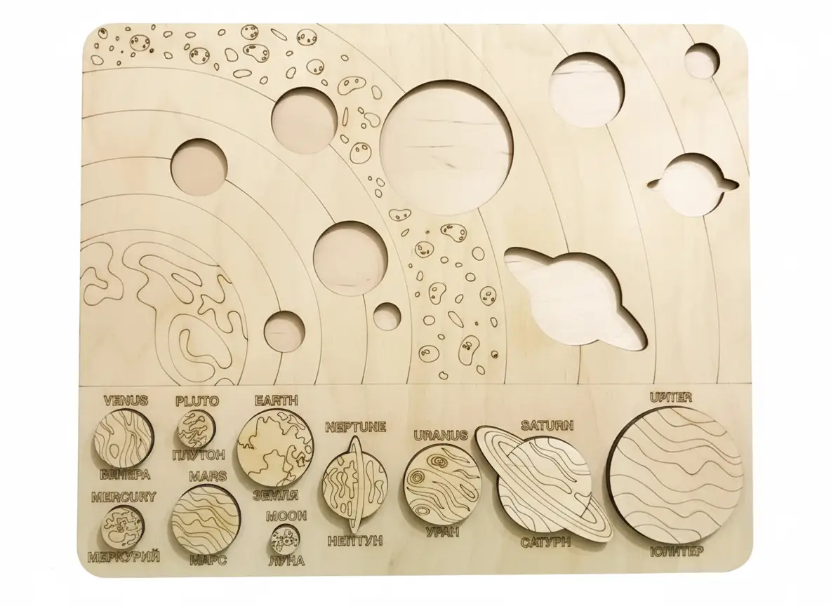 Spark curiosity and inspire young minds with our Solar System Puzzle made of high-quality MDF, designed to offer a perfect blend of learning and fun. Each planet is precisely laser-cut and showcases clean detailing, making the puzzle visually appealing and easy to handle. Children can explore the wonders of space while developing problem-solving skills, hand–eye coordination, and spatial understanding.